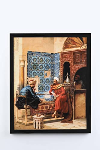 Generic - تابلوه ببرواز من الخشب للتعليق على الحائط لغرفة المعيشة ويمكن استخدامه كقطعة ديكور بتصميم عصري وطباعة ديجيتال مصر القديمة مجموعة الاصدقاء يلعبون شطرنج ويشربون القهوة فضي