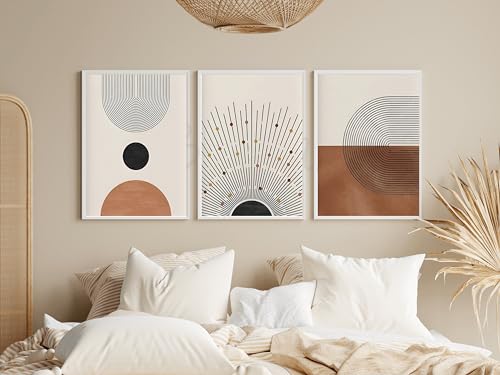 Generic - لوحات جدارية عصرية، طباعة فنية لغرفة المعيشة بنمط بوهو باللونين البرتقالي والأسود، مقاس 40 × 30 سم، مجموعة من 3 قطع