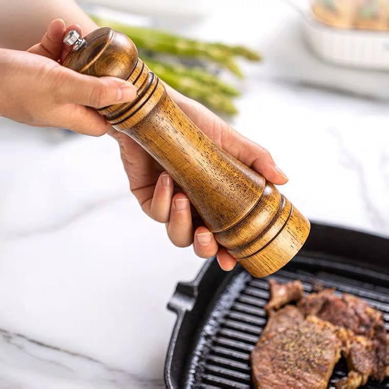 - تتميز بتصميم خشبي طبيعي وحجم كبير يوفر ثباتاً فائقاً أثناء الطحن، مما يمنحكِ تجربة استخدام منظمة ومريحة لجميع أنواع التوابل والحبوب الصلبة.