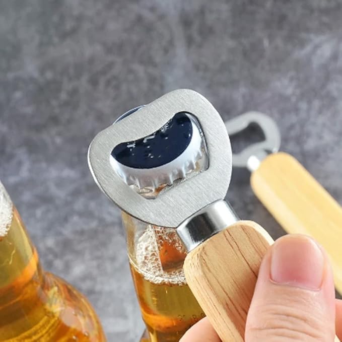 - تصميم فاخر: فتاحة زجاجات معدنية متينة بمقبض خشب ناعم، توفر قبضة مريحة وأداء موثوق لفتح الزجاجات بسهولة.