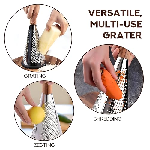 Generic - مبشرة بمقبض خشبي - مبشرة مثلثة من الفولاذ المقاوم للصدأ مع قاعدة سيليكون متعددة الاستخدامات، مثالية لبشر جميع أنواع الخضروات والجبن وجوزة الطيب