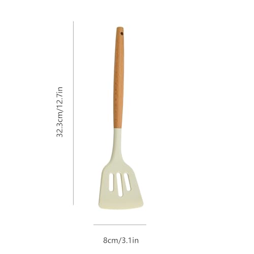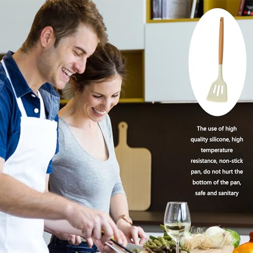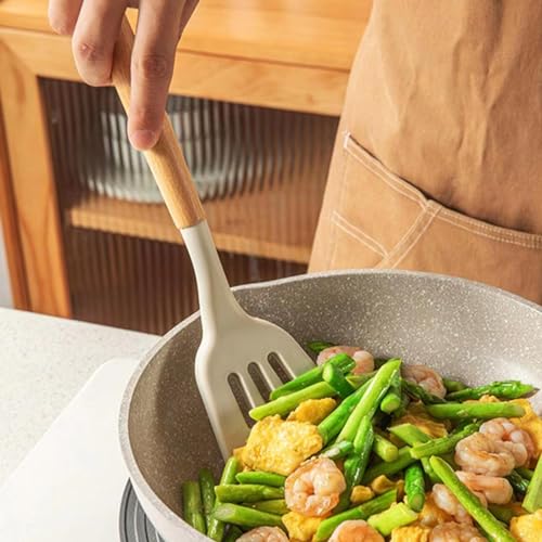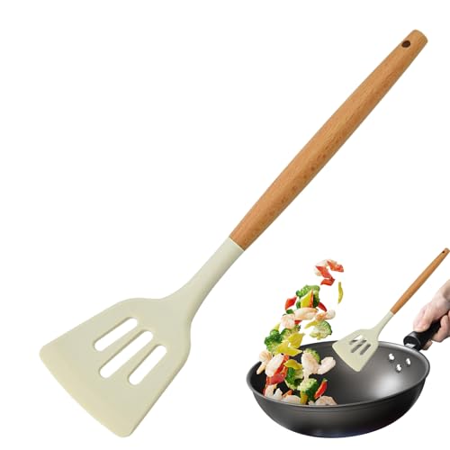 CHROX - مقصوصة سيليكون بمقبض خشبي، أدوات طبخ متينة مخرمة للشوربة، سباتولا سيليكون مسطحة غير لاصقة مقاومة للحرارة، للخبز والخلط والشواء وتقديم الطعام