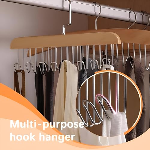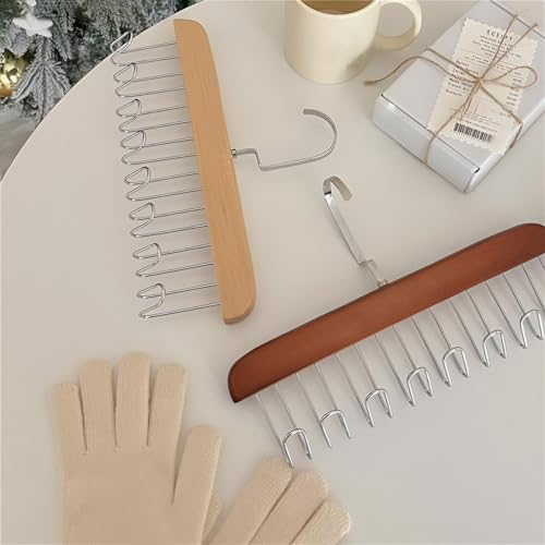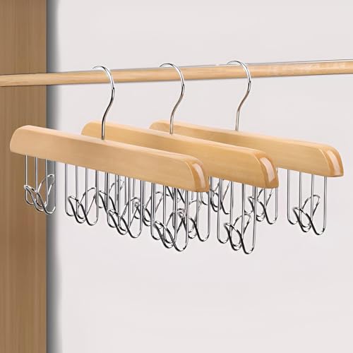 Generic - شماعة خشب مثالية لتنظيم الأحزمة والحمالات والملابس الداخلية والسكارفات مع خطافات مطوية لتنظيم الدولاب بشكل فعال للرجال والنساء (3 قطع)