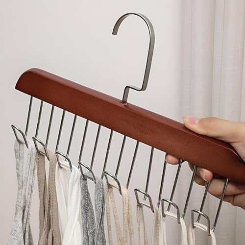 - شماعات خشبية مزودة بـ16 خطافًا، قابلة للتعديل لتعليق الأحزمة، الأشرطة، الملابس الداخلية، السكارفات، مع خطافات قابلة للطي لتنظيم الدولاب، للرجال والنساء (شماعة واحدة)