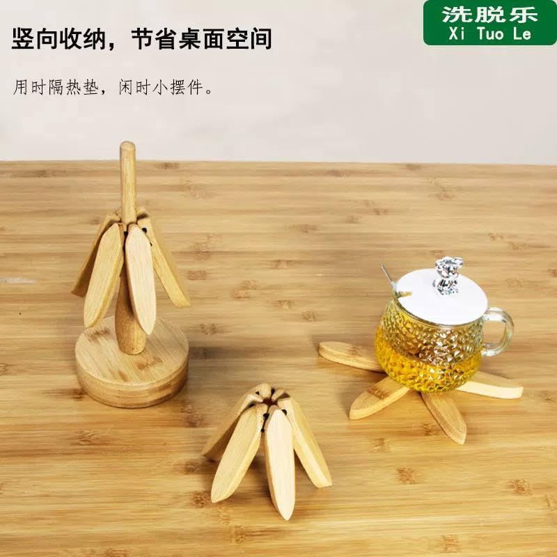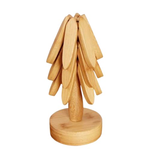 Generic - طقم حوامل أطباق ساخنة خشبية 3 قطع مع ستاند تخزين منظم للمطبخ وطاولة الطعام ar