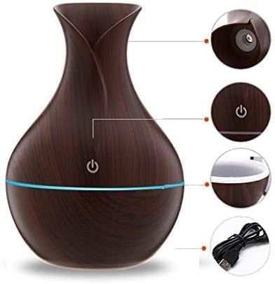 Generic - جهاز ترطيب وموزع زيوت عطرية خشبي، معطر جو للمنزل والسيارة والمكتب بإضاءة متغيرة الألوان، 1 قطعة