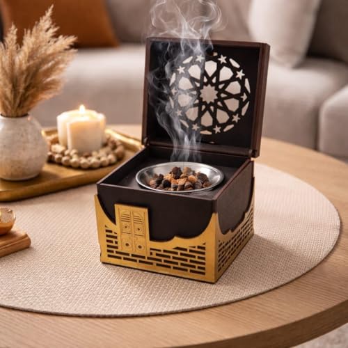 - تصميم على شكل الكعبة بلمسة روحانية التصميم المستوحى من شكل الكعبة يضيف إحساس إيماني جميل للمكان، ويخلي المبخرة مناسبة جدًا لشهر رمضان والمناسبات الدينية. قطعة ديكور قبل ما تكون أداة استخدام، وتشرف في أي ركن من أركان البيت.
