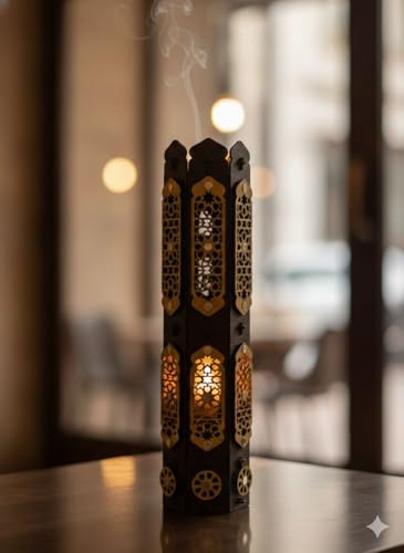 • تصميم مغربي أصيل: حامل بخور خشبي بتصميم برج سداسي منحوت بزخارف مغربية تقليدية تضفي لمسة فنية راقية على ديكورك المنزلي