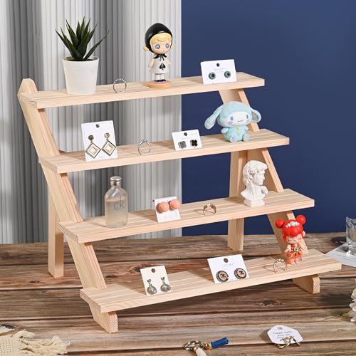 LEXFUNN - رف خشبي لعرض المجوهرات والحلقان، رف منظم 3 أو 4 طبقات، 4 طبقات