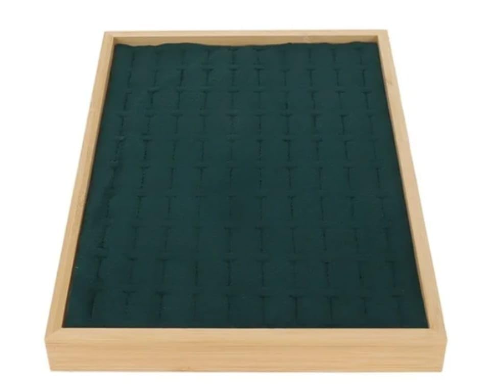 Generic - صينية عرض مجوهرات خشبية مع بطانة مخملية، إطار خشبي طبيعي، أخضر داكن، 35 × 24 × 3 سم عرض ١٠٠ خاتم (اخضر)