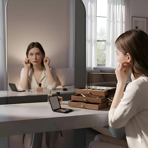 Generic - منظم مجوهرات خشبي - نظام ثلاثي ادراج عالي الجودة مع جزء داخلي من القطن الناعم، مثالي للاكسسوارات اليومية، يعزز مساحة جمالك بتصميم انيق