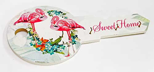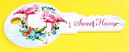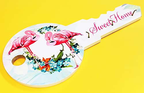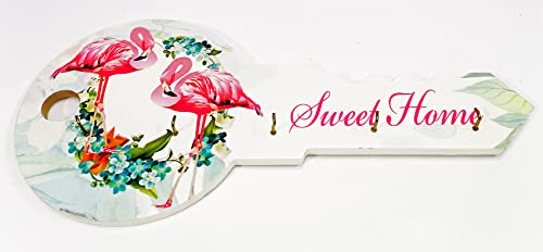 Generic - عليقة و علاقة مفاتيح خشب لون ابيض علي شكل مفتاح حامل مرسوم عليها رسومات طبيعية