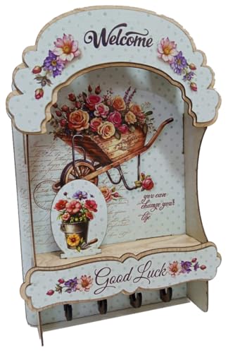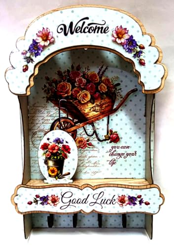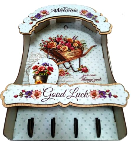 Generic - علاقة وعليقة مفاتيح خشب وحامل مفاتيح وعلاقة لون ازرق فاتح طباعة تركي علي شكل منزل - Good Luck
