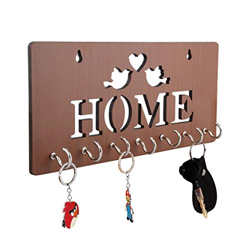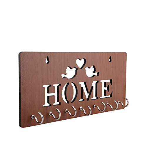 Sehaz Artworks - حامل مفاتيح خشبي للتعليق على الحائط مع 7 خطافات للمفاتيح | 2 - حامل مفاتيح بتصميم طائر لديكور المنزل وديكور الحائط والغرف والمفاتيح سيهاز ارت ووركس