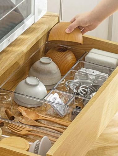 - منظم الأدراج: مجموعة من الصواني الشفافة القابلة للتعديل لتنظيم أدوات المطبخ وأواني الطهي بشكل مرتب