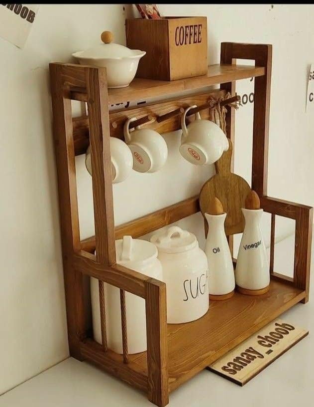 Generic - رف تخزين خشب للمطبخ، رف حائط من طبقتين مع خطافات أكواب، مقاس 60 × 25 × 60 سم