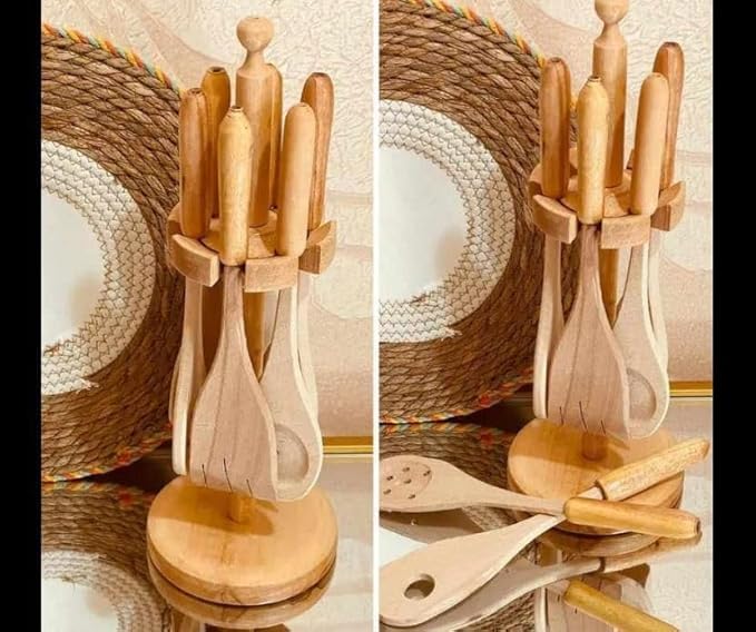 - طقم توزيع عملي مصنوع من خشب زان طبيعي يتميز بالمتانة والشكل الراقي يضيف لمسة أنيقة على السفرة ويعكس ذوق مرتب في التقديم.