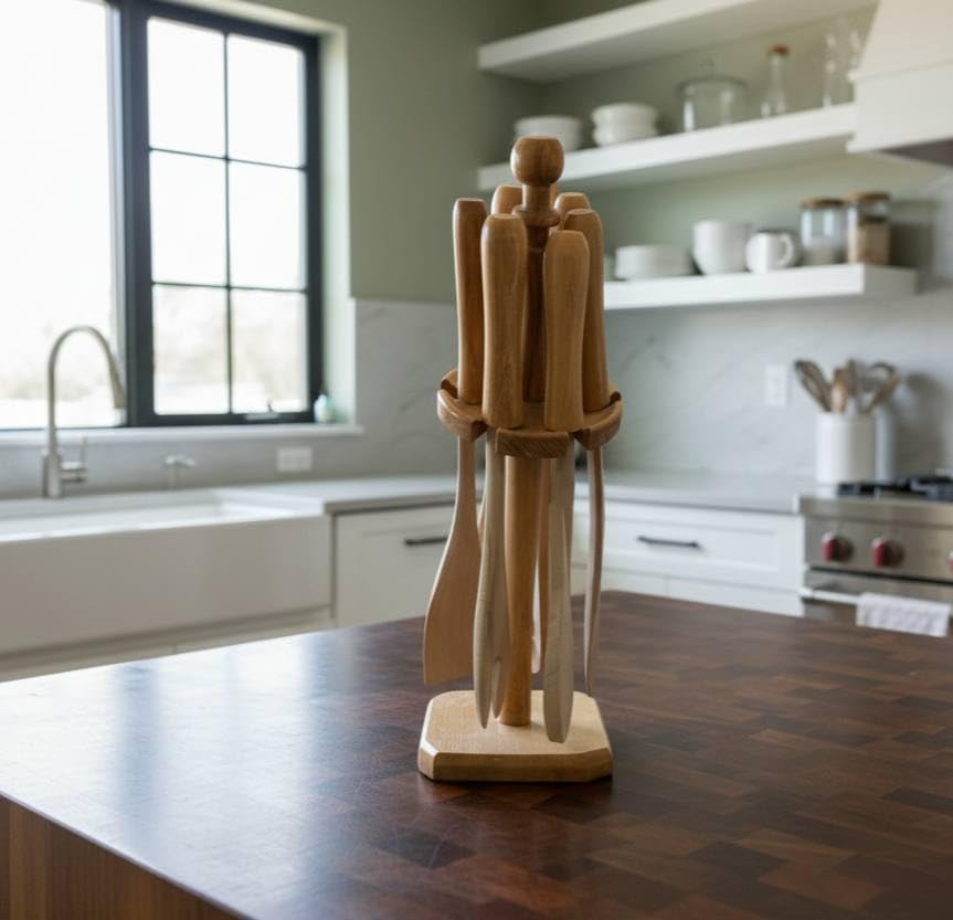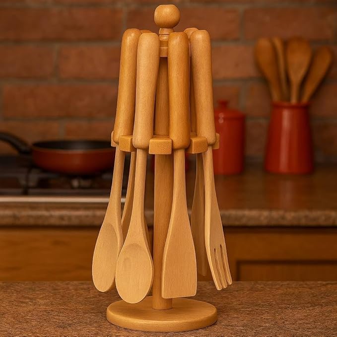 Generic - طقم توزيع خشبي لحمل ادوات المطبخ طقم تقديم عملي لتنظيم السفرة والمناسبات OM