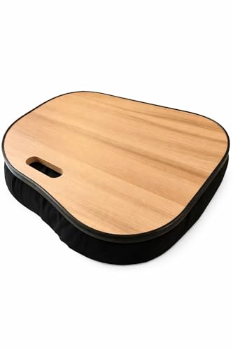 EBASKT - مكتب لابتوب خشبي مع قاعدة مبطنة، سطح من الخشب الطبيعي، وسادة سوداء، صينية لابتوب محمولة مع مقبض