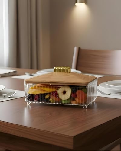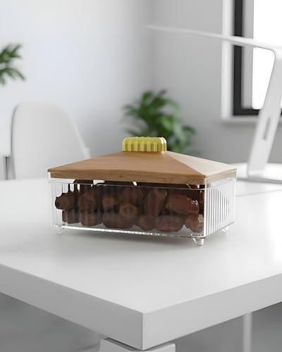 Generic - غطاء خشبي - حل تخزين متطور يتميز بهيكل اكريليك شفاف وحامل ذهبي؛ مثالي لتقديم التمور الفاخرة والمكسرات المختلطة والحلوى بأناقة اليوم.