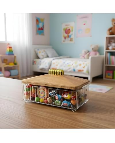 - يعمل الجزء العلوي المصنوع من الخشب الطبيعي القابل للإزالة كغطاء واقٍ للحفاظ على المحتويات طازجة وخالية من الغبار مع إضافة جمالية عضوية دافئة إلى مساحتك. يعمل هذا الغطاء العملي أيضًا كسطح تقديم أنيق للضيوف، مما يجعله مثاليًا لتقديم الحلويات أو الوجبات الخفيفة أثناء التجمعات على طاولات القهوة أو مناطق تناول الطعام. يضمن المقبض المزخرف على الغطاء الخشبي سهولة الرفع والنقل من غرفة إلى أخرى، مما يعزز الأداء العام وتجربة المستخدم لهذا التصميم الأنيق