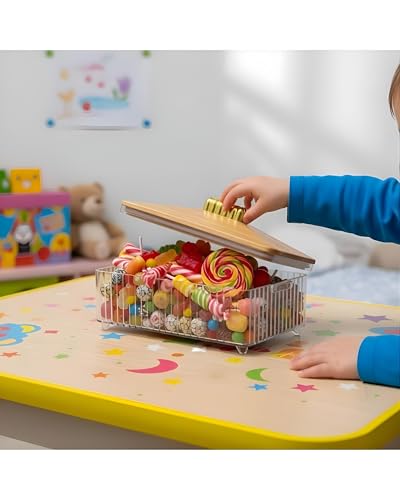 - يوفر التصميم الشبكي السلكي الشفاف رؤية ممتازة، مما يسمح لك بتحديد العناصر المخزنة في لمحة دون الحاجة إلى فتح الغطاء أو البحث في المحتويات. تعمل هذه الرؤية الواضحة على تبسيط إدارة المخزون في المخازن أو على المنضدات، مما يضمن لك معرفة دائمًا ما يحتاج إلى إعادة التخزين أو مكان وجود حلوى محددة على الفور. يعزز الهيكل المفتوح تدفق الهواء حول السلع المخزنة، مما يساعد على الحفاظ على الوجبات الخفيفة الجافة طازجة مع منع تراكم الرطوبة الذي يمكن أن يحدث في حاوية كاملة