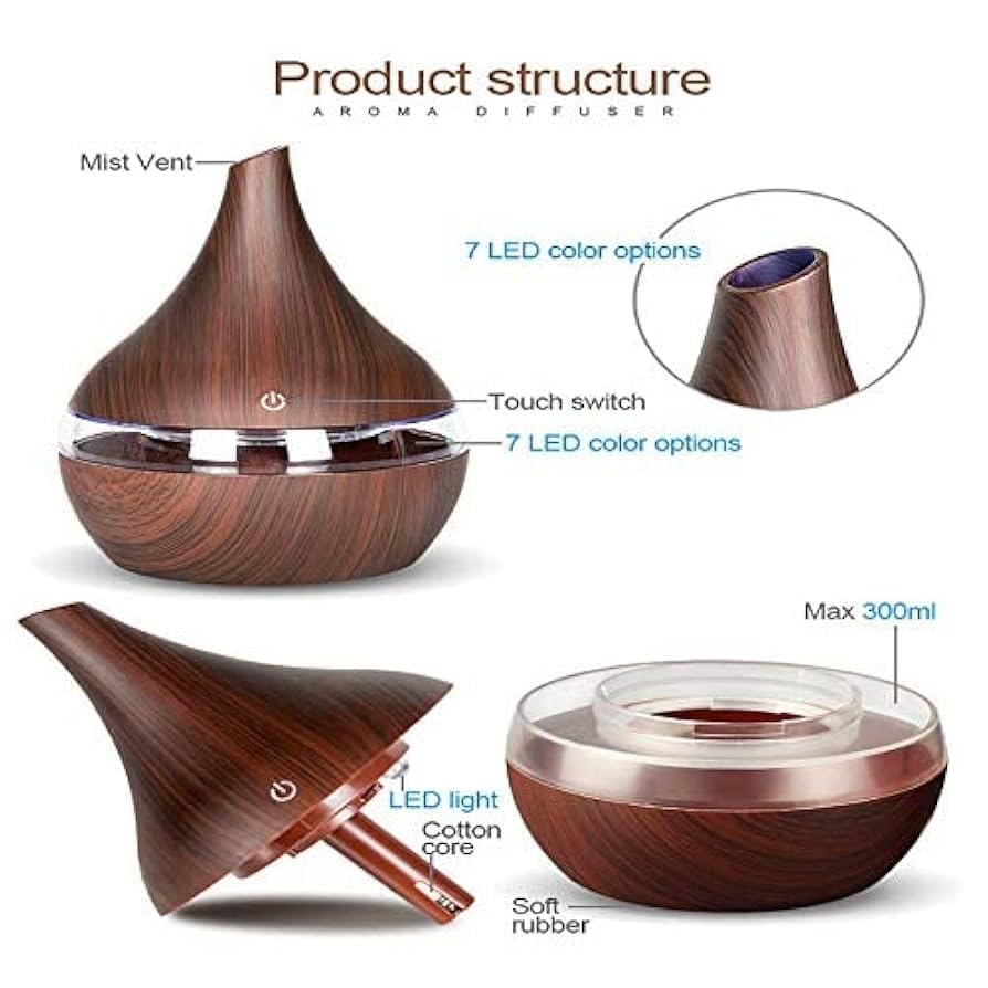 Generic - فواحة خشبية مضيئة – مرطب هواء عطري بتصميم أنيق وإضاءة LED هادئة للاسترخاء وتحسين جودة الهواء في المنزل أو المكتب3