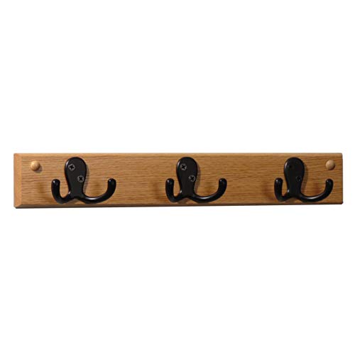 Wooden Mallet - وودن ماليت 3 قضبان مزدوجة الشوكة، خطافات سوداء، رف معطف من خشب البلوط الفاتح