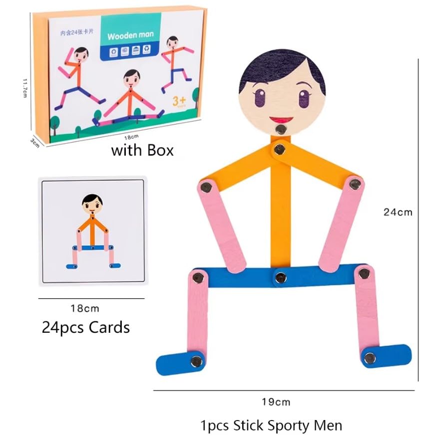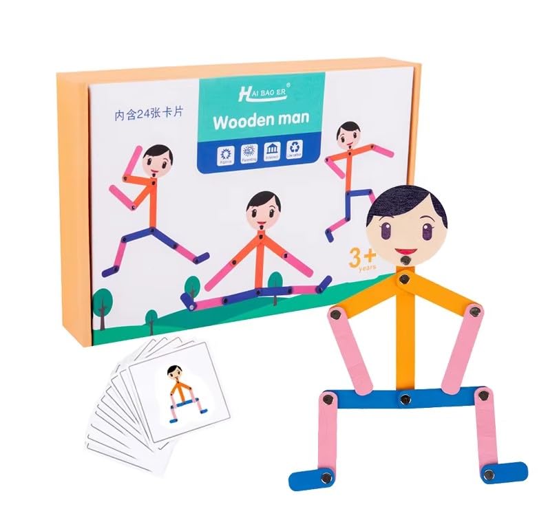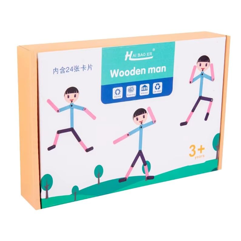 Generic - لعبة الرجل الخشبي التعليمية التفاعلية مع 24 بطاقة للأطفال هي لعبة مصممة لتنمية الخيال والإبداع ونشاط الدماغ.