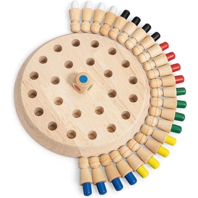 - لعبة ذاكرة خشبية: لوح دائري مصنوع من الخشب الطبيعي مع أوتاد ملونة لتطوير مهارات الذاكرة والتركيز لدى الأطفال