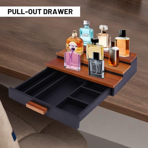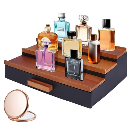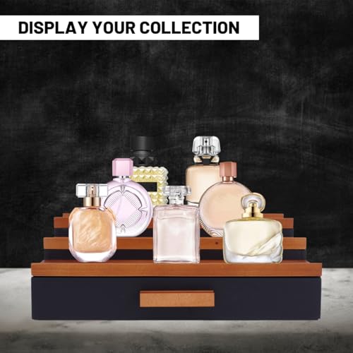 Mavbec - منظم كولونيا خشبي للرجال من 3 طبقات، رف عرض كولونيا مرتفع مع منظم درج ورف عرض لتخزين العطور، هدية رائعة للرجال