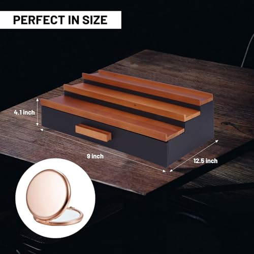 - مواد وحرفية عالية الجودة: صندوق منظم الكولونيا للرجال مصنوع من الخشب الفاخر ويظهر حرفية استثنائية، مما يجعله متينًا وممتعًا من الناحية الجمالية - ملحق مثالي لطاولة الزينة الخاصة بك