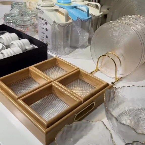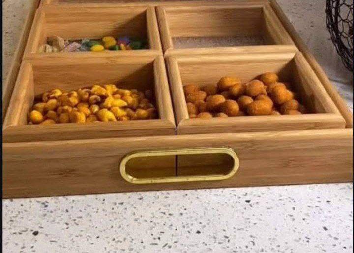 Generic - علبة تنظيم وتسالي بتصميم خشبي أنيق مع 4 أقسام عملية لحفظ المكسرات،الحلوى والوجبات الخفيفة، مثالية لتقديم الضيافة في المنزل أو المكتب