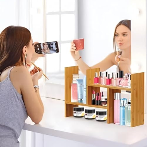 Generic - رف منظم خشبي - رف انيق متعدد الاستخدامات على شكل حرف H لمستحضرات التجميل او التوابل، ارتفاع 42 سم وعمق 11 سم، حامل تخزين مثالي للمطبخ او الحمام او المكتب