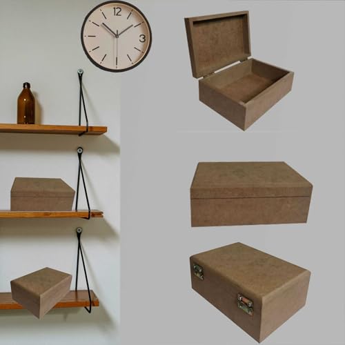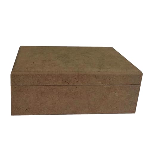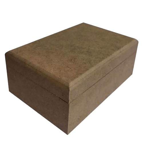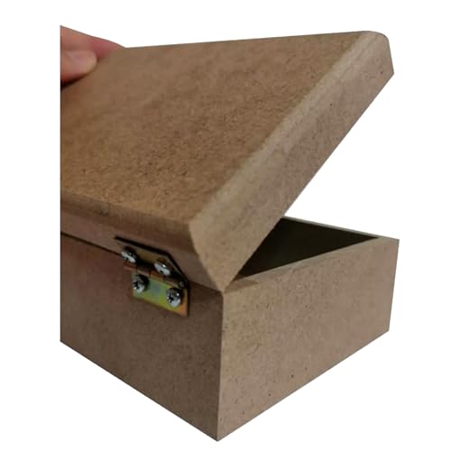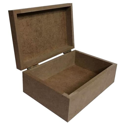 Genel - صناديق مستطيلة الشكل من الخشب قابلة للطلاء مع غطاء من خشب ليفي متوسط الكثافة خام، صندوق تخزين مفصلي كصندوق هوايات، صندوق مجوهرات لتزيين اللوحة مقاس 15 × 10 × 6 سم