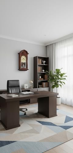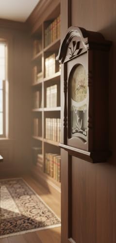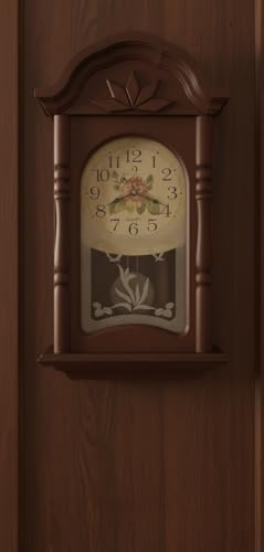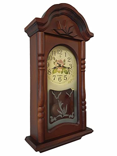 - ساعة حائط تناظرية بندول تاج خشبي موفرة للبطاريات ملف نحاسي كبير لون بني مقاس 60 في 28 سم