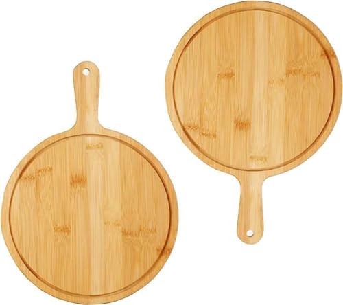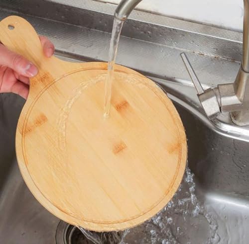 Generic - صينية بيتزا خشبية بمقبض للخبز وتقطيع البيتزا (الحجم: 6 مل) (دائري، L)، اصفر