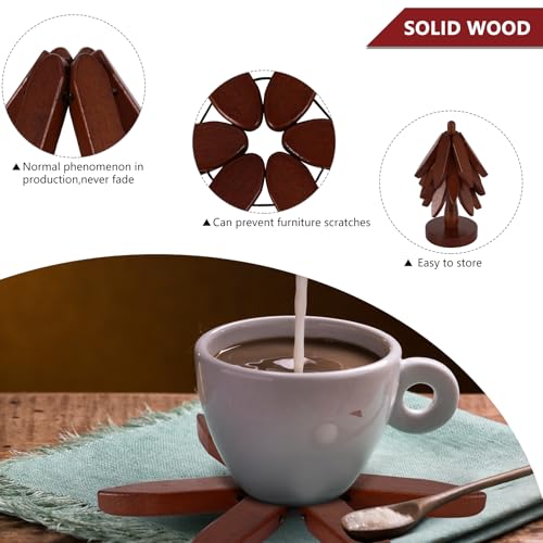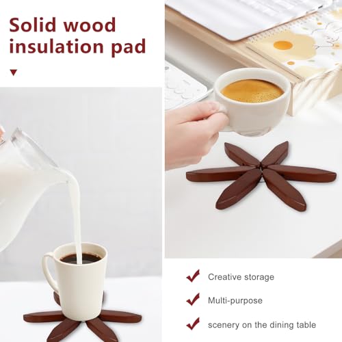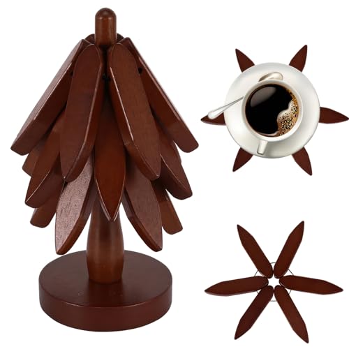 Kinberry - مفارش خشبية، قواعد اكواب خشبية على شكل شجرة للاطباق الساخنة، قواعد اكواب ابداعية قابلة للطي وقابلة للتكديس، حصيرة طاولة على شكل شجرة خشبية مقاومة للحرارة للاواني الساخنة والمقالي