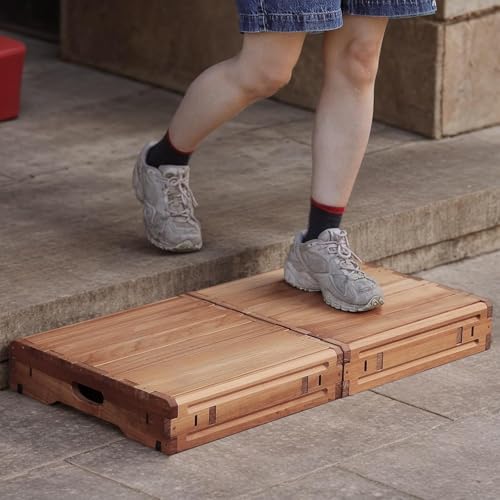 LUOFENGYANG - منصة خشبية، عبوتان مختلطتان، مقعد بخطوة واحدة لكبار السن والاطفال، درجات الشرفة، درجات متنقلة، مناسب لذوي الاحتياجات الخاصة وكبار السن والاطفال