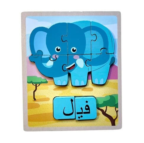 Generic - بازل خشبي على شكل فيل يحمل اسم باللغة العربية، مقاس 15×18 سم