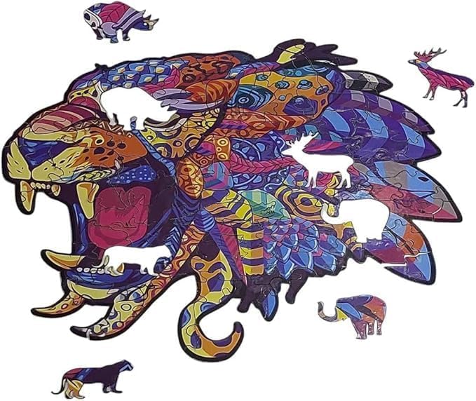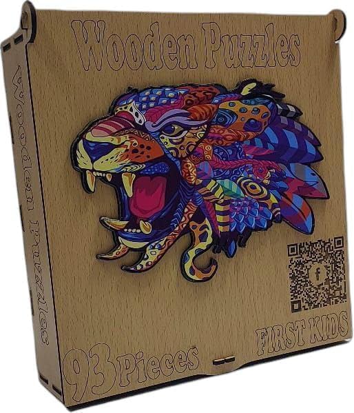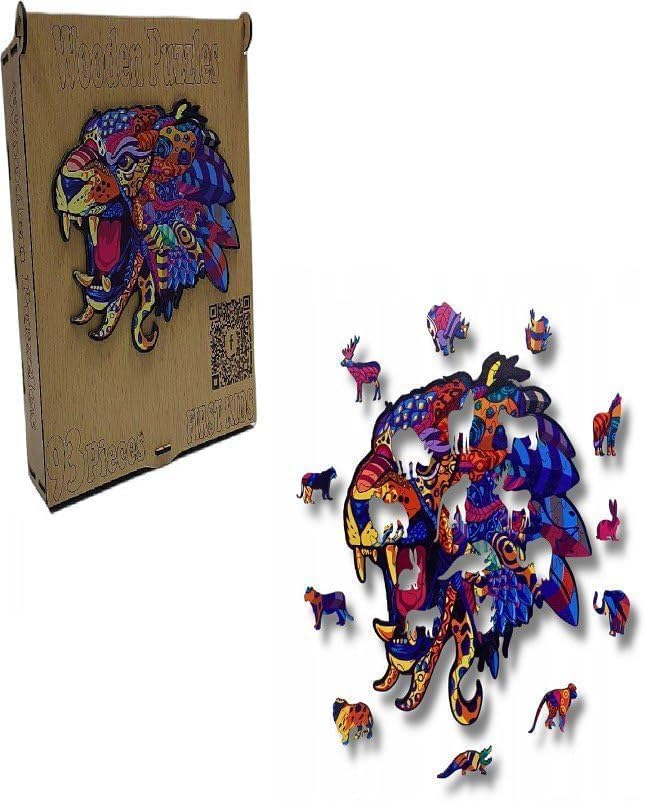 - أحجية خشبية بتصميم نمر في صندوق خشبي (93 قطعة) أحجية فريدة وغير منتظمة، لعبة ممتعة وصعبة للبالغين والأطفال، هدية مثالية للديكور والفن.