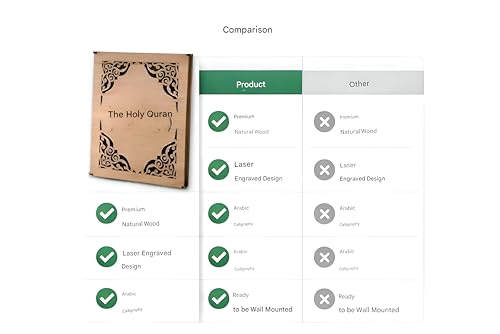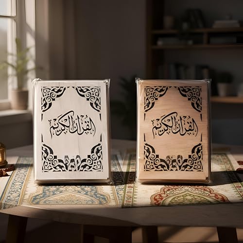 - يتميز هذا الغطاء الخشبي الرائع بخط عربي محفور بالليزر على جميع الجوانب، ويمزج بين الفن الإسلامي التقليدي والحرفية الحديثة لخلق قطعة مقدسة لا تتأثر بمرور الزمن تكرم القرآن بأناقة وعمق روحي.