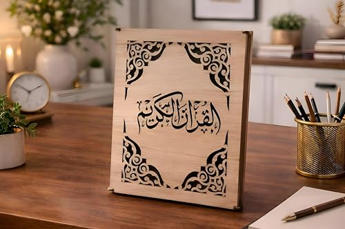 Generic - حافظة مصحف خشبية - محفورة بالليزر بشكل رائع مع كتابة عربية، هيكل قوي مع زوايا معززة، مثالية للتخزين الامن والهدايا ذات مغزى (موديل 2)