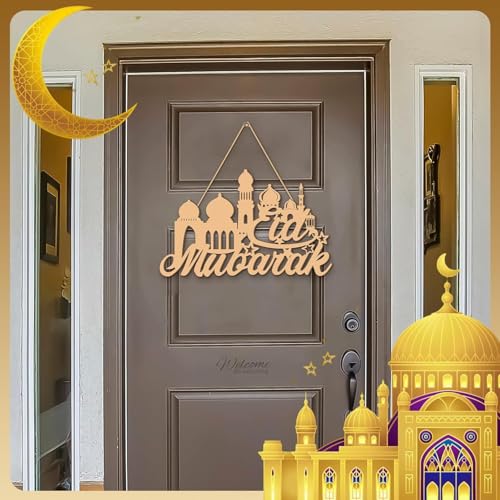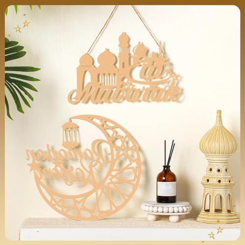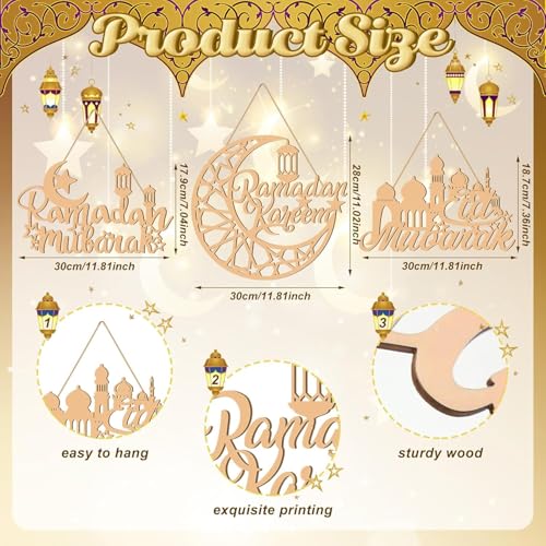 Generic - مجموعة ديكورات رمضان خشبية، لوحة فنية جدارية اسلامية مع كريم، تصاميم مبارك، خشب طبيعي، 30 سم، نمط تعليق، 3 قطع
