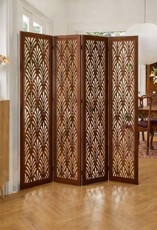 Generic - مقسم غرف خشبي 4 ألواح , بني