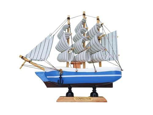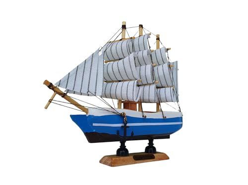 Generic - مركب شراعية خشبية صناعة يدوية من الخشب و القماش اللون ازرق مقاس 18 في 18 سم