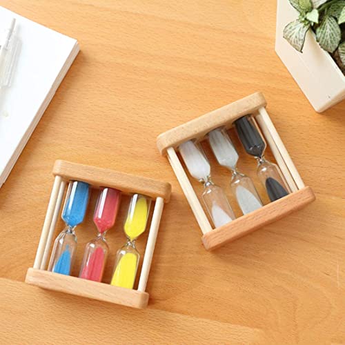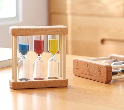 SYOSI - ساعة رملية مؤقت باطار من الخشب صغيرة لمدة 1+3+5 دقيقة مناسبة كهدية وديكور للالعاب والمنزل والمكتب والفصول الدراسية (ملونة)