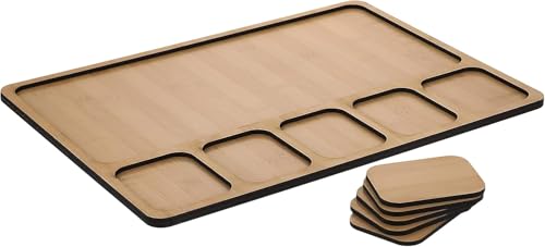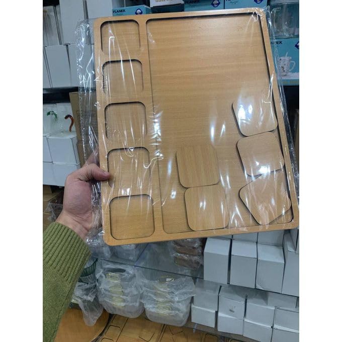 Generic - سرفيس تقديم خشب مع تقسيم 5 خانات لتقديم منظم 💫 يتضمن 5 كوستر لحماية الأسطح من التلف، ومصنوع من خامة خشبية عالية الجودة لضمان المتانة والجمال (١ قطعه)