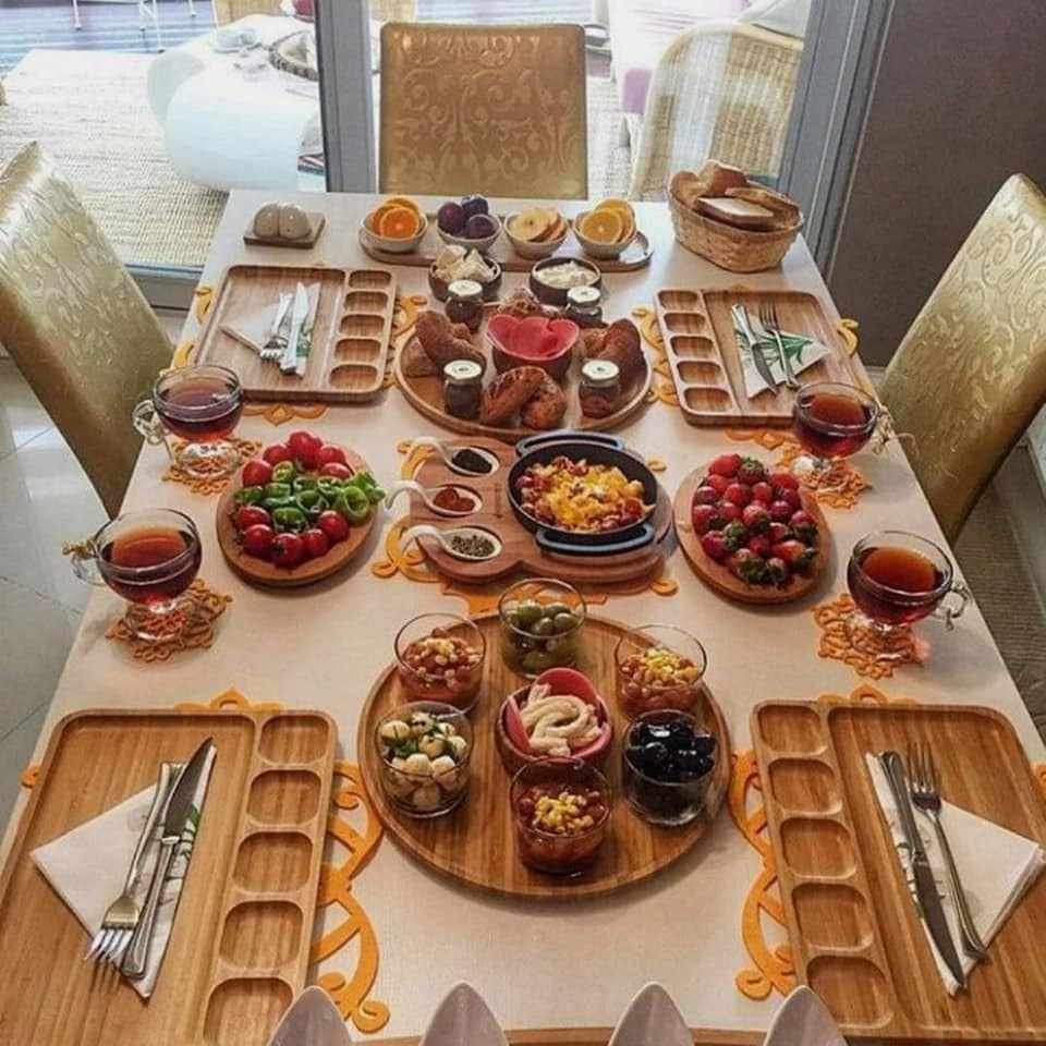 - سرفيس تقديم خشب فاخر 🌟 تصميم مميز يضيف لمسة فاخرة للسفرة ويغير شكلها تمامًا.