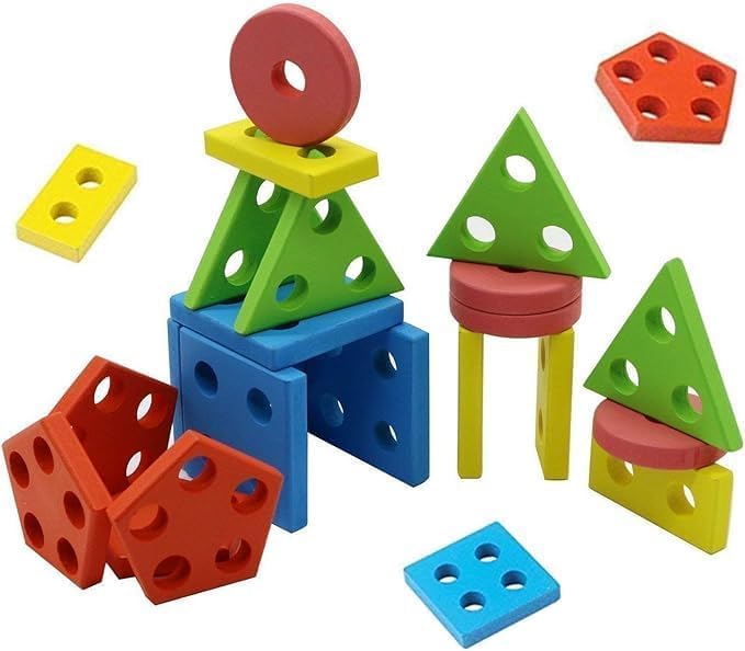 Generic - مجموعة تصنيف وتكديس الأشكال الخشبية – 21 قطعة لتنمية مهارات الأطفال